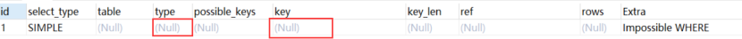 如果该列是NULL,则没有相关的索引。在这种情况下,可以通过检查 where 子句看是否可以创造一个适当的索引来提高查询性能,然后用 explain 查看效果。