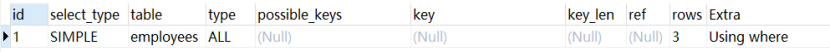 EXPLAIN SELECT * FROM employees WHERE name is null;