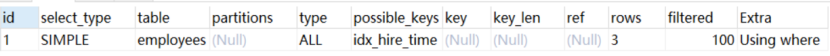 EXPLAIN select * from employees where hire_time >='2018-09-30 00:00:00' and hire_time <='2018-09-30 23:59:59';