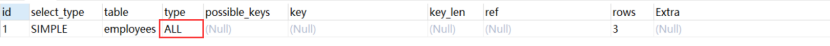 EXPLAIN SELECT * FROM employees WHERE name = 1000;