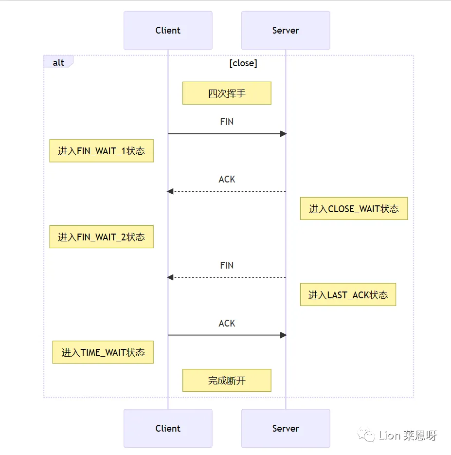 断开连接是比建立连接和传输数据还复杂的一个过程,断开连接主要分为主动关闭和被动关闭两种。 四次挥手示意图: