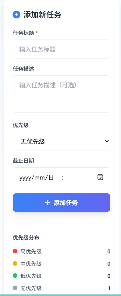 - 任务优先级管理(高 / 中 / 低 / 无)