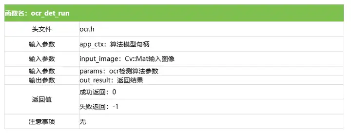 int ocr_det_run(rknn_app_context_t* app_ctx, cv::Mat input_image, ocr_det_postprocess_params* params, ocr_det_result* out_result);