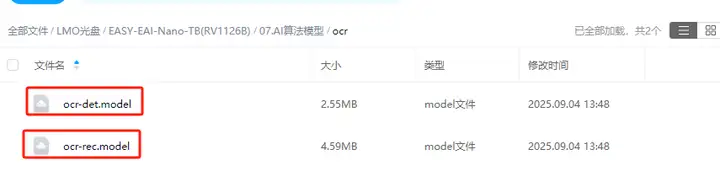 要完成算法Demo的执行,需要先下载OCR算法模型。