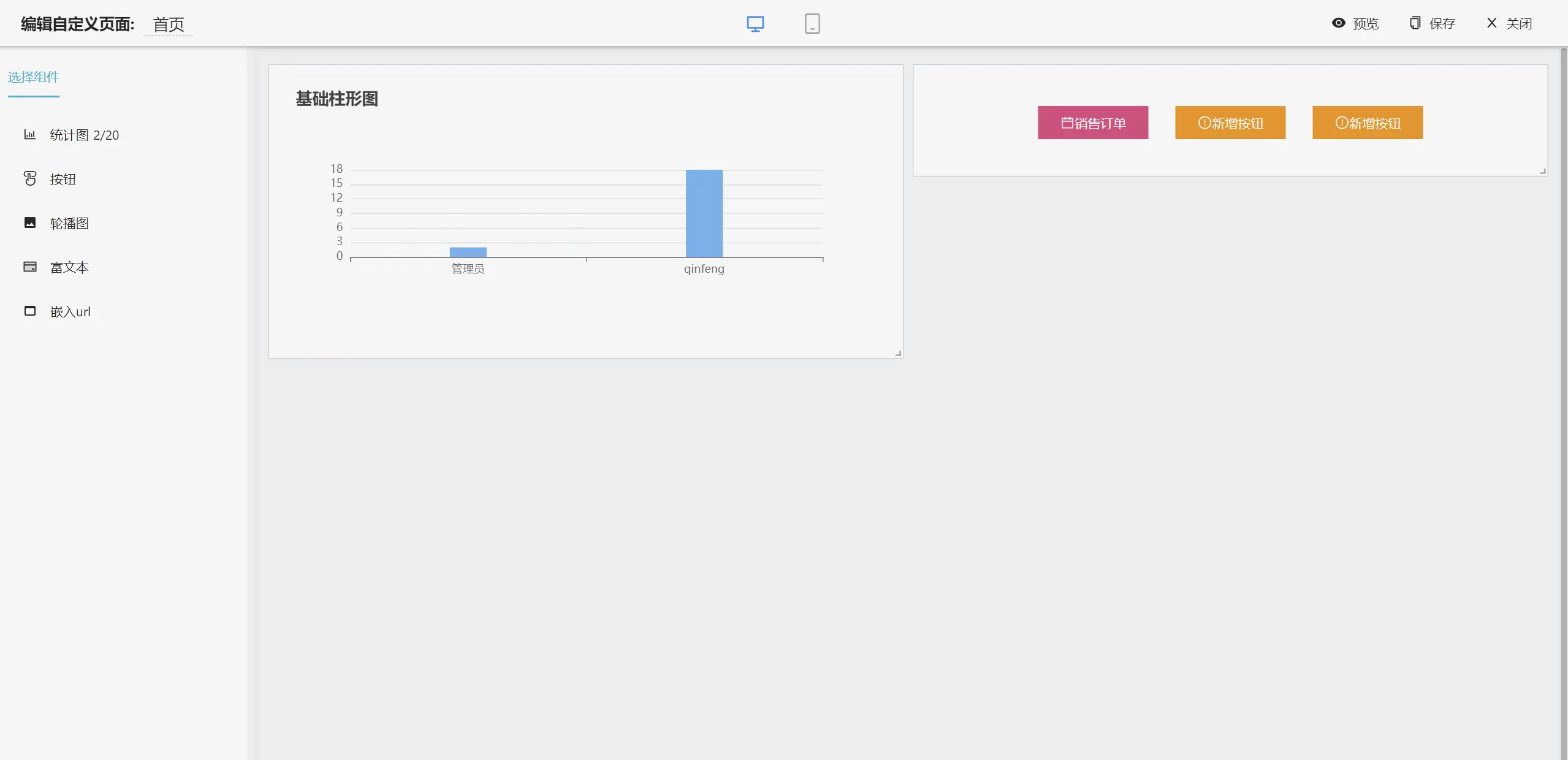 实现了多种图表数据可视化的展现,图表、按钮、富文本、轮播图、嵌入URL皆可配置