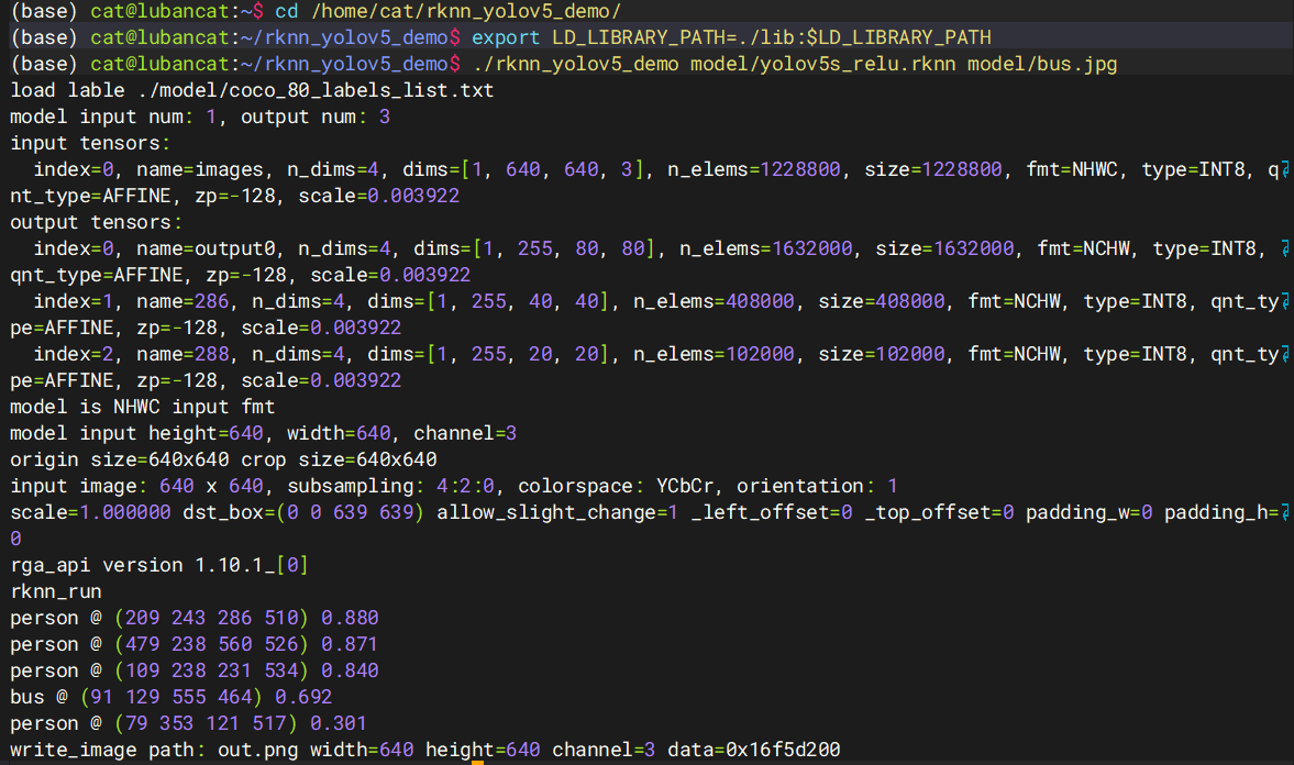 ./rknn_yolov5_demo model/yolov5s_relu.rknn model/bus.jpg
