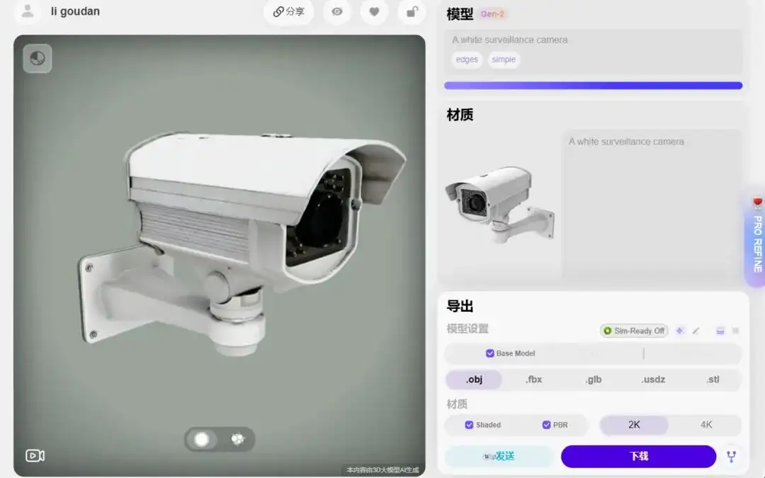 使用HYPER3D生成的摄像头模型