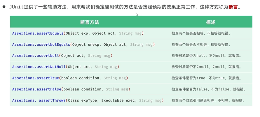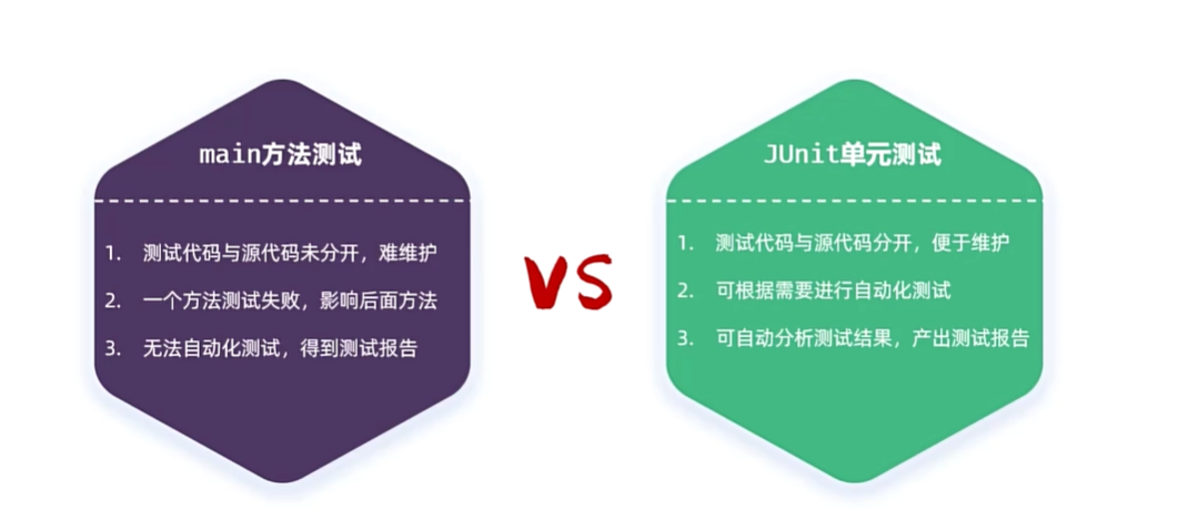 Main方法的不足:测试代码与源代码未分开,难以维护;一个方法测试失败,影响后面方法;无法自动化测试,得不到测试报告