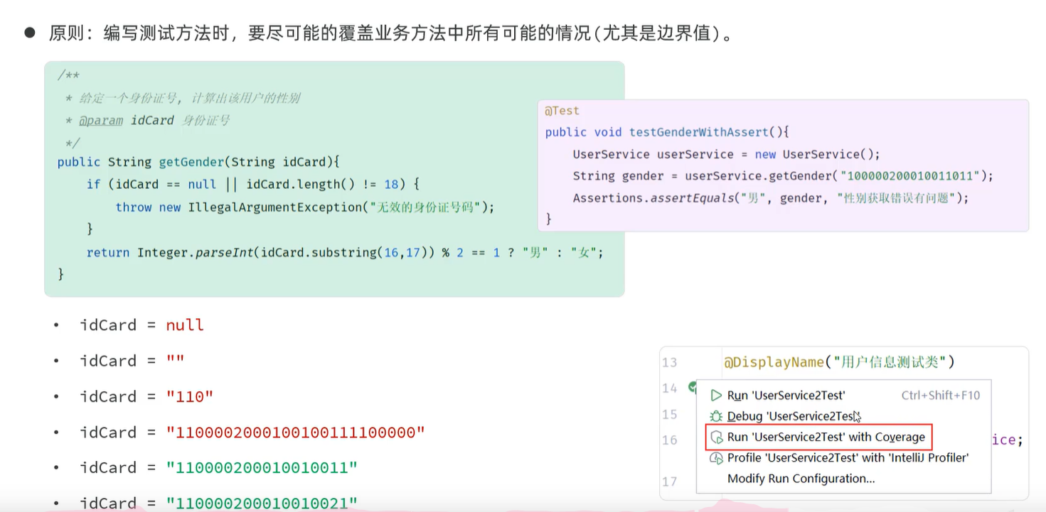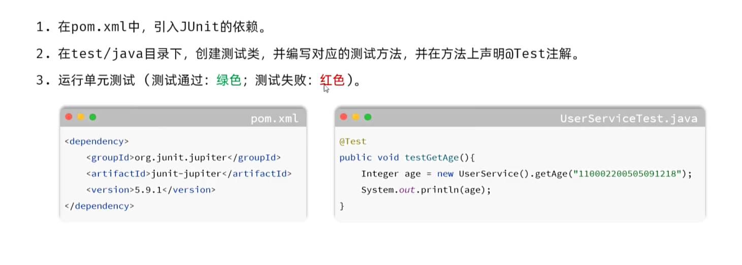 针对方法进行测试,使用JUnit测试框架
