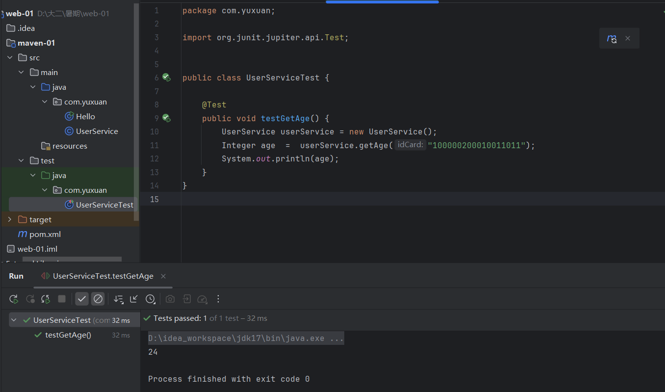 Integer age = userService.getAge("100000200010011011");