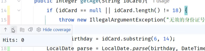 红色,hits:0 表明这段代码没有覆盖到