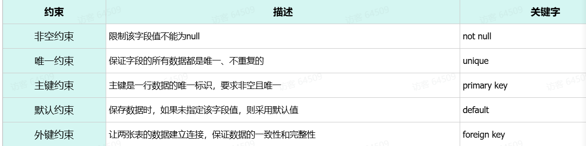 概念:所谓约束就是作用在表中字段上的规则,用于限制存储在表中的数据。