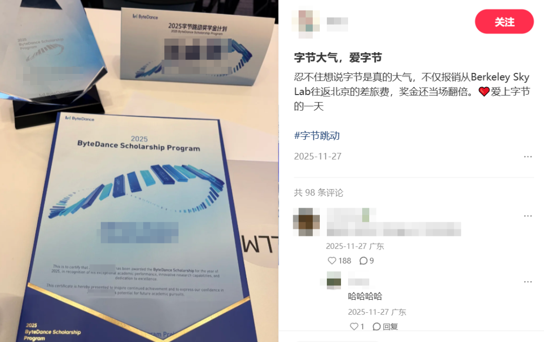 - 字节跳动:更是拿出真金白银吸纳顶尖AI人才,为20位聚焦大模型、机器学习、多模态、AI Infra、机器人、AI for Science、硬件等领域的博士,每人发放20万元专项奖励(含10万现金+10万学术资金补贴),同时为每位获奖博士的导师配套10万元奖励,全力打通AI人才培养链路。