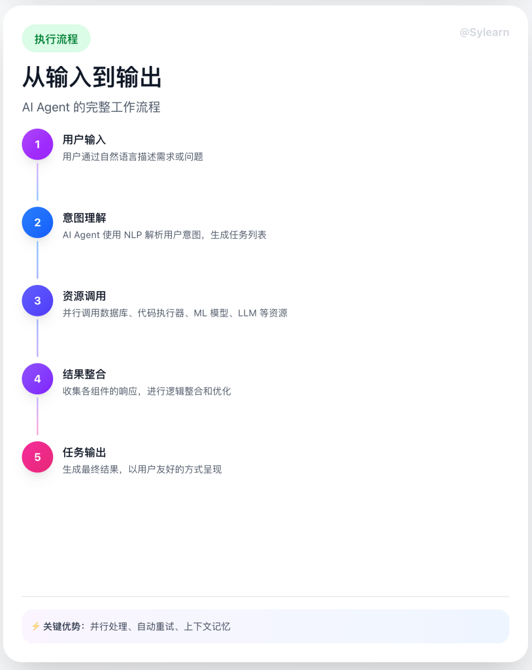 - 多工具编排:能调用数据库、代码执行器、第三方 API 等多种工具,支持串行或并行流程。