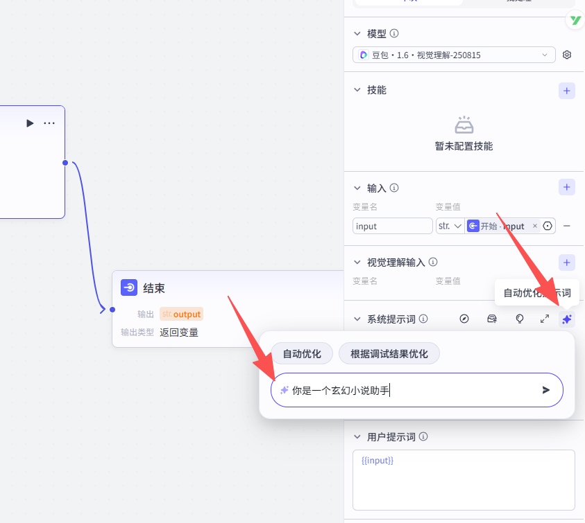 这里要注意系统提示词能够自动写,不用咱们手搓,非常方便。