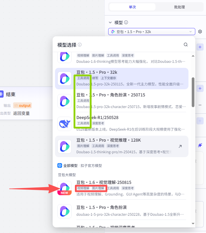 咱们选择的大模型必须支持视频理解或者图片理解才可以,要不然无法上传图片和视频。