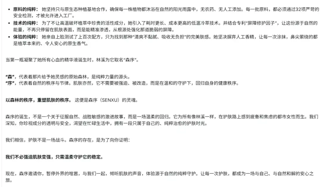 - 只会平铺直叙,无法打动人心。将品牌历史从头到尾讲一遍,像一篇说明文,枯燥无味,缺乏能引发用户情感共鸣的“钩子”。