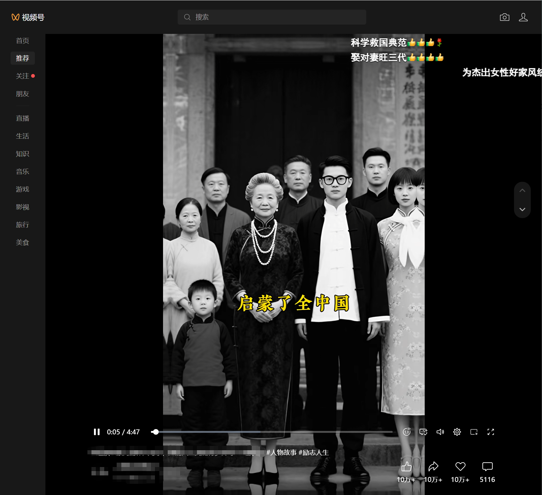 最近人物故事视频流量不错,社群里的群友问Coze工作流能不能做?我去看了一下视频号上的原视频(点赞10w+,转发10w+,小心心10w+),制作方式就是简单的图片,字幕时间线稍作合并处理后进行素材拼接:
