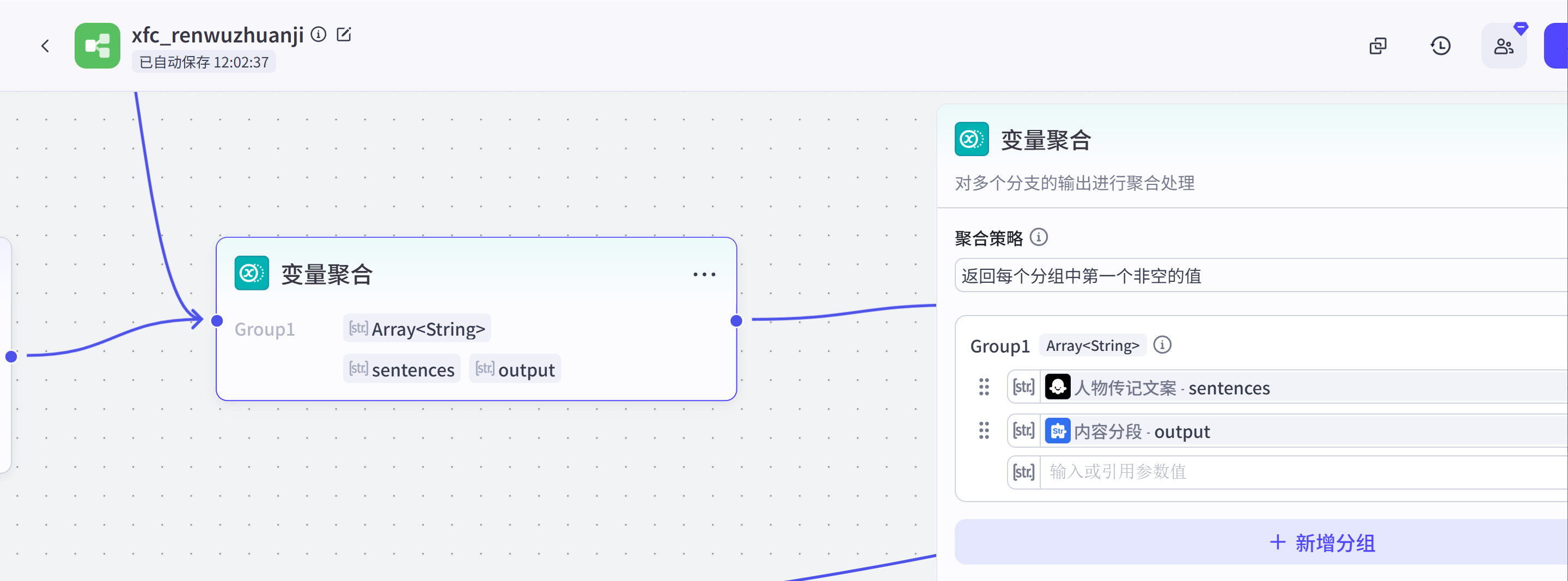 变量聚合:这个节点作用是取出最终版本的视频文案。