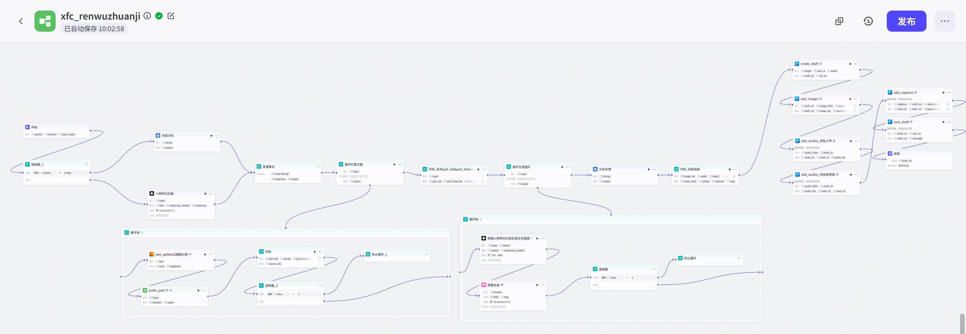 工作流的使用方法很简单,只需要在开始节点输入人名,自定义文案(非必填),背景音乐,等待几分钟即可获得剪映草稿: