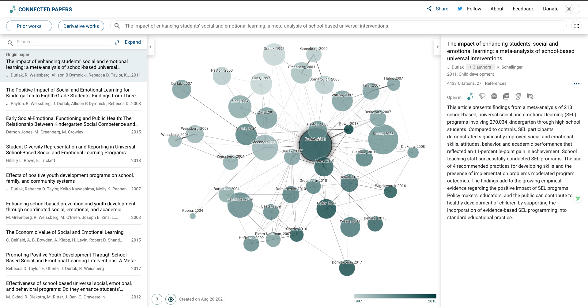 图谱还会用颜色区分论文的发表时间,让你直观看到这个课题的演进过程。