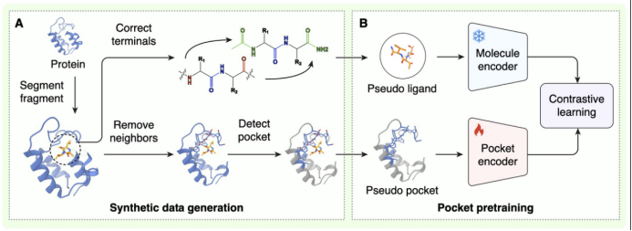 - 自监督结构预训练: 团队创造性地从海量蛋白数据中切取片段模拟“假配体”,构造了多达 550 万组 训练样本。这种策略让 AI 在接触真实药物前,就已深刻领悟了蛋白表面的结构特征,赋予了模型极强的 Zero-shot泛化能力。