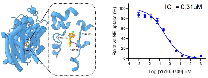在临床靶点 NET(去甲肾上腺素转运体)的实验中,DrugCLIP 筛选出的候选分子中有 15% 证实有效,且部分分子的活性直接超越了现有的一线临床药物。相关复合物结构已通过冷冻电镜解析,进一步验证了其生物学可信度。