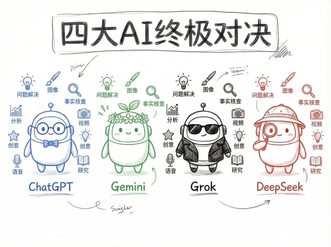 AI模型横向评测:ChatGPT、Gemini、Grok、DeepSeek全面PK,结果出人意料,建议收藏