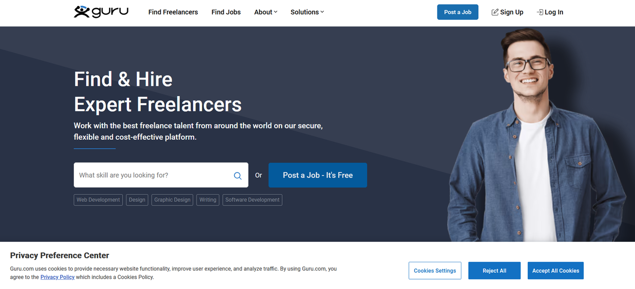 Guru 更偏向长期合作型的平台,强调开发者背景、技能标签和历史合作记录。平台整体节奏较慢,不追求高频撮合。