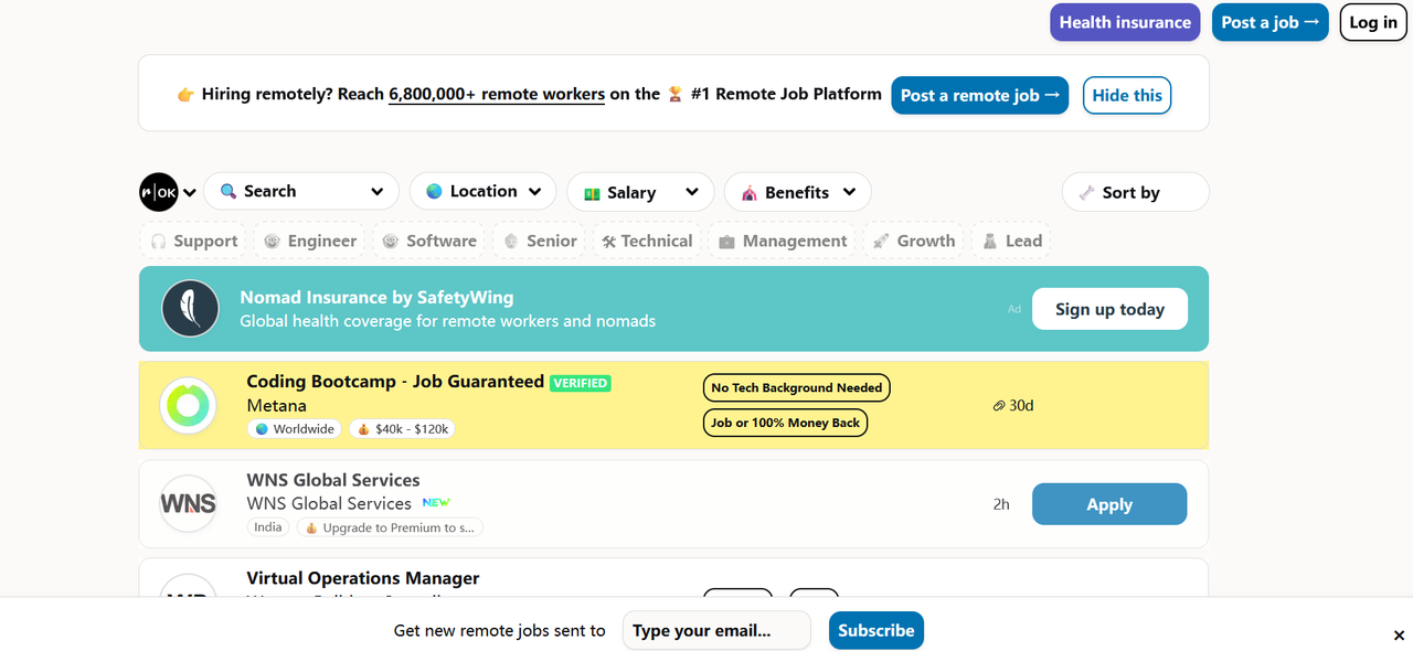 RemoteOK 更像是远程岗位和需求的信息集合入口,更新速度快、覆盖面广。