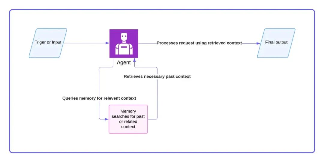 其最简形式为:单智能体系统响应触发器,处理任务,并返回输出。不涉及记忆、规划或外部交互,仅包含:输入、推理和响应。此模式适用于简单自动化或原型验证,并有助于在构建智能体应用时检验工作流和想法。