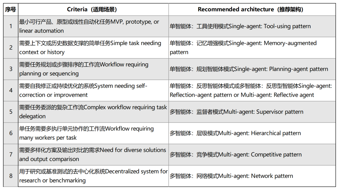 系统的工作流决定智能体采用的架构,可以帮助大家判断单智能体设置是否足够,抑或需要分布式的多智能体设计来实现目标。