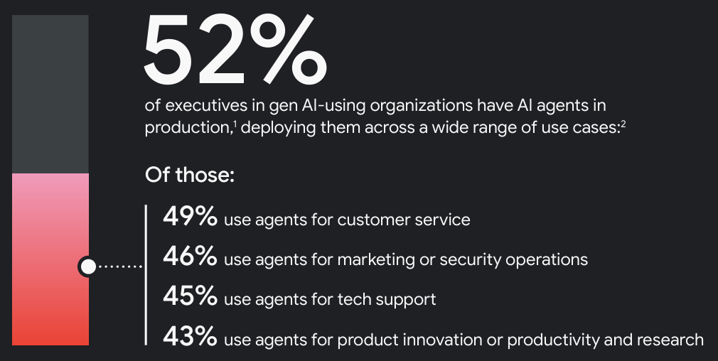 49%的已在生产环境中使用AI智能体的高管表示,他们正在采用智能体来提升客户服务和体验。
