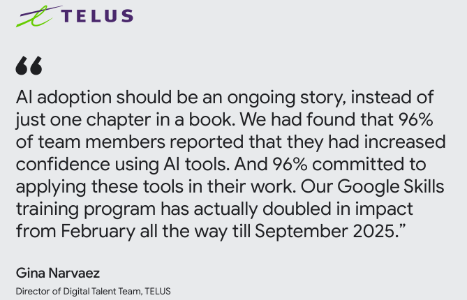 同样,电信巨头TELUS也见证了类似的效率提升,超过57000名团队成员定期使用AI,每次交互平均节省40分钟。