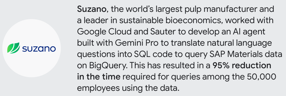 全球最大的纸浆制造商Suzano与谷歌云合作,开发了一个基于Gemini Pro的AI智能体。