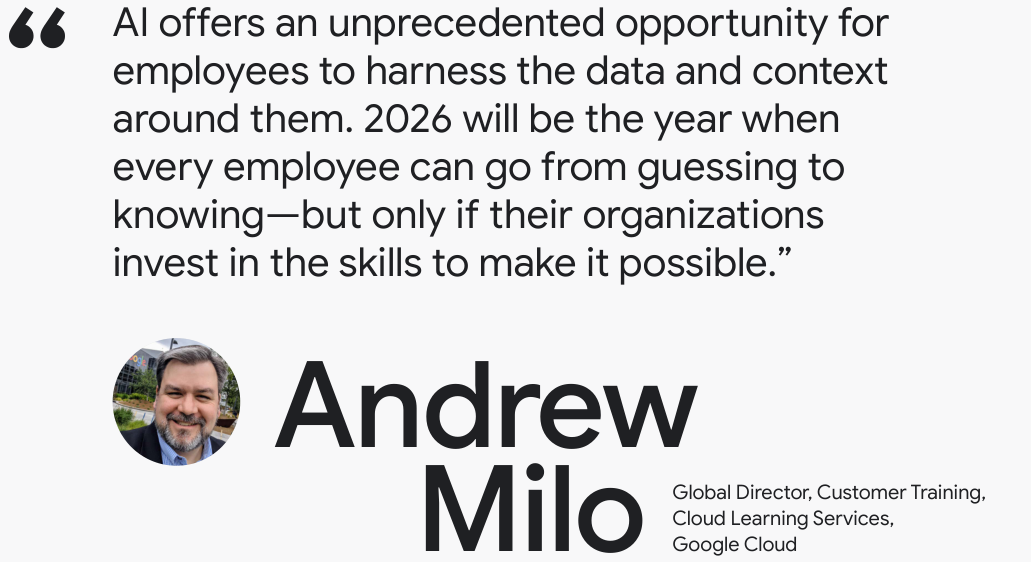 Andrew Milo强调,2026年是员工从猜测转向确知的关键年份,前提是组织必须投资于技能培训。