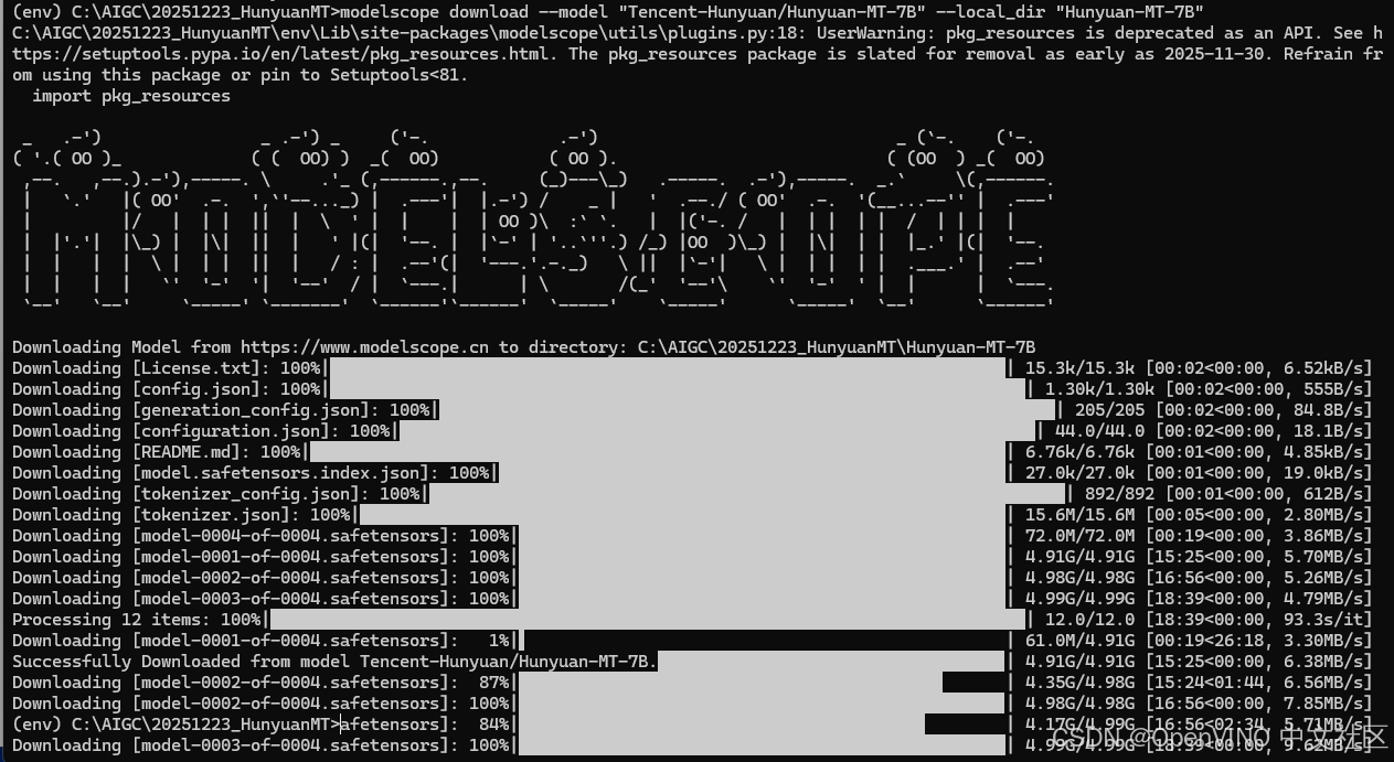 modelscope download --model "Tencent-Hunyuan/Hunyuan-MT-7B" --local_dir "Hunyuan-MT-7B"