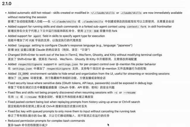 Claude Code 2.1系列发布了。