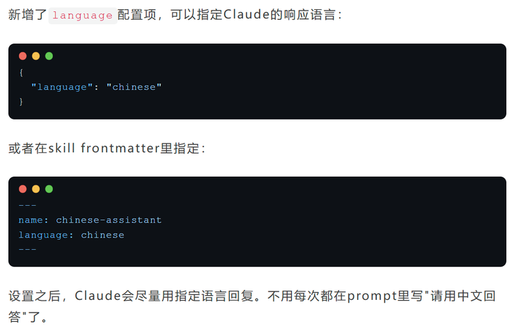 不过要注意,这个配置是"尽量"而不是"强制"。如果对话上下文是英文的,或者涉及代码和专业术语,Claude可能还是会混用英文。