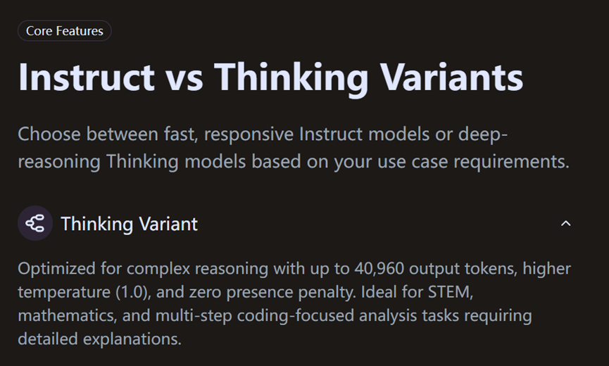 这款模型还分了思考版和指令版,跟咱们干活选工具似的,有的活需要慢慢琢磨,有的活需要快速搞定。