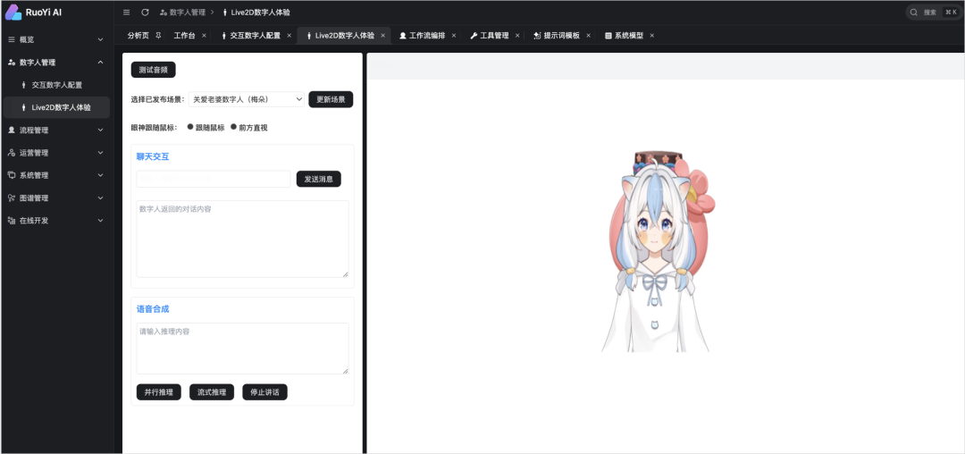 🧑💼 AI数字人集成:兼容Live2D,GPT-SoVITS,火山引擎等,实现数字人对口型,语音交互。