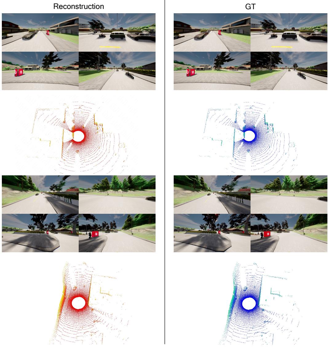 Figure 8: The visualization of LiDAR and video reconstructions on Carla dataset.