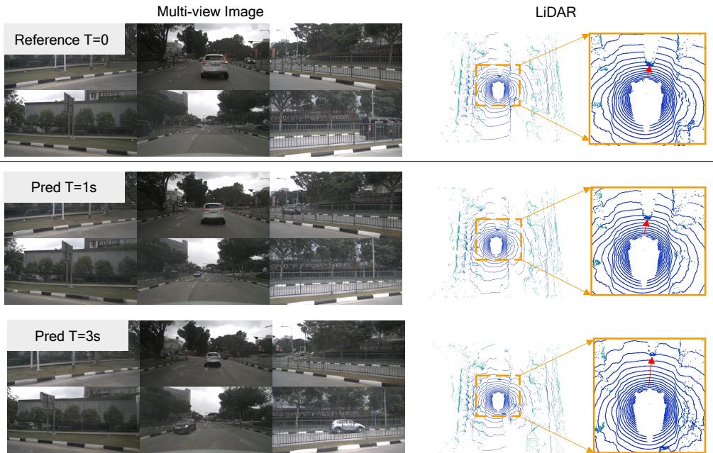 Figure 9: The visualization of LiDAR and future predictions on nuScenes dataset.
