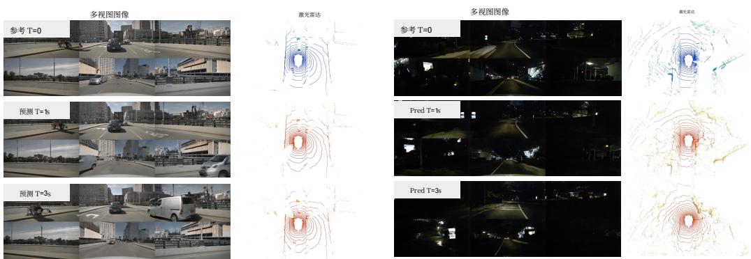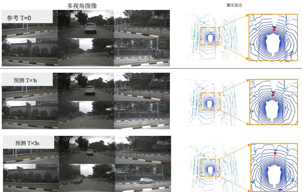 图9:在 nuScenes 数据集上对激光雷达和未来预测的可视化。