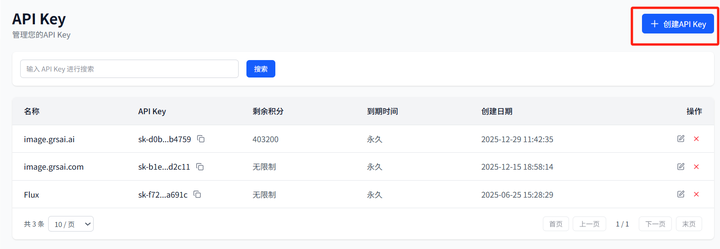 (1)进入Grsai控制台:https://grsai.com/zh/dashboard/api-keys(com需要魔法,没有改成ai)