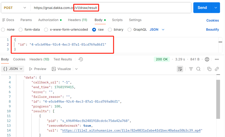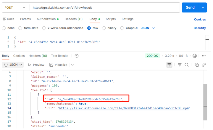 const resultResponse = await fetch('https://grsai.dakka.com.cn/v1/draw/result', {