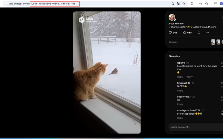 Remix(重混/重制)允许你基于一段已有 Sora 生成的视频(需要Pid),输入新提示词(prompt)进行修改或延续,而不从零重新生成整个视频。