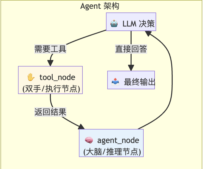 利用 LangGraph 构建了一个稳健的推理循环(Reasoning Loop),使智能体能够自主判断何时以及如何使用工具 |