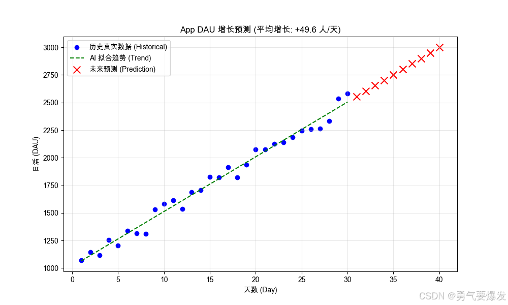 print(f" -> 增长趋势 (斜率): 每天约新增 {w:.2f} 个用户")