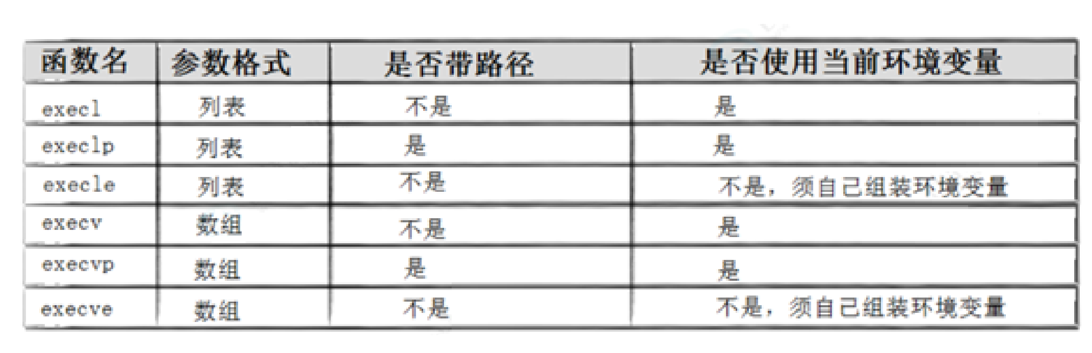 • 这些函数如果调用成功则加载新的程序从启动代码开始执行,不再返回。